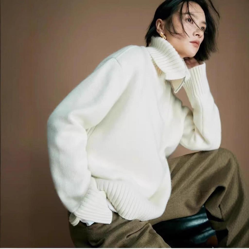 2025 Women's Plus Size 100% Wool Wheat Ear Pattern Knit Sweater - Stylish Autumn/Winter Base Layer