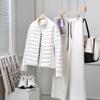 Experience the perfect blend of elegance and functionality with this women's lightweight down jacket. Filled with 90% goose down, it offers medium thickness for optimal warmth and comfort. Crafted with high-quality polyester material, this jacket features a loose fit and a stylish stand neckline, making it a versatile piece for any wardrobe. Designed with long sleeves, it's perfect for layering or wearing as a standalone outerwear piece, combining light luxury with practical design. Ideal for those seeking both style and warmth, this jacket is an essential addition to your collection.