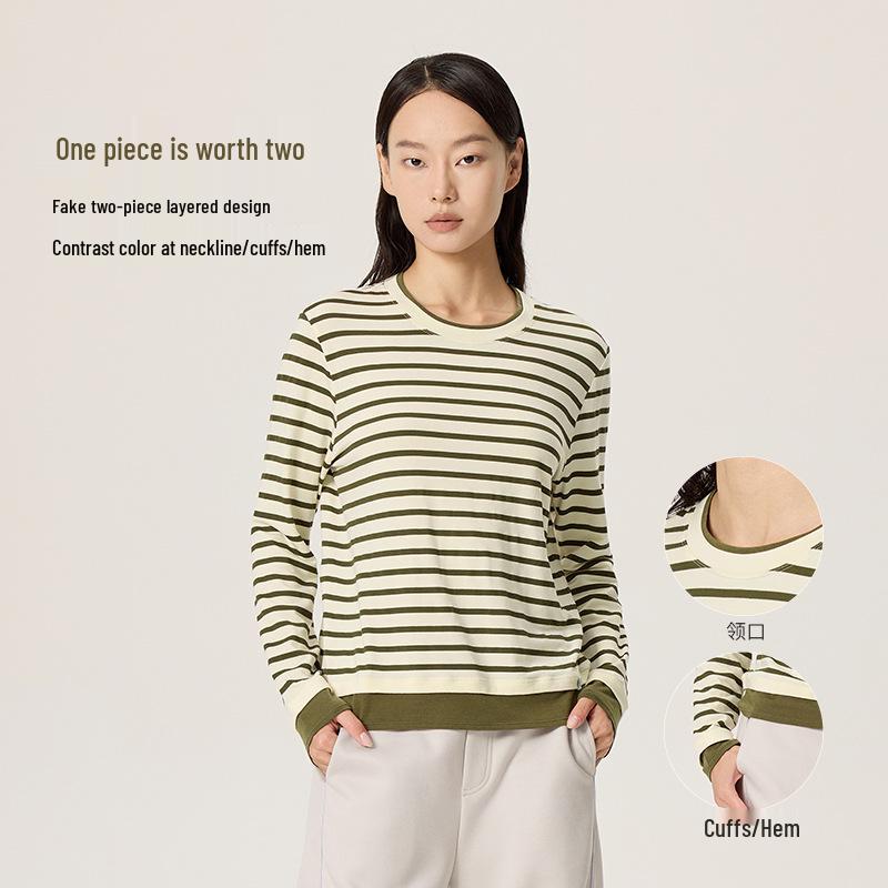 Merino Wool Tencel Striped Two-Piece Casual Long Sleeve T-Shirt