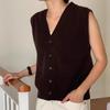 Women's Wool Vest: Autumn Winter V-Neck Cardigan with Cashmere, Loose Sleeveless Design, Shoulder Pads, Knitted Sweater.