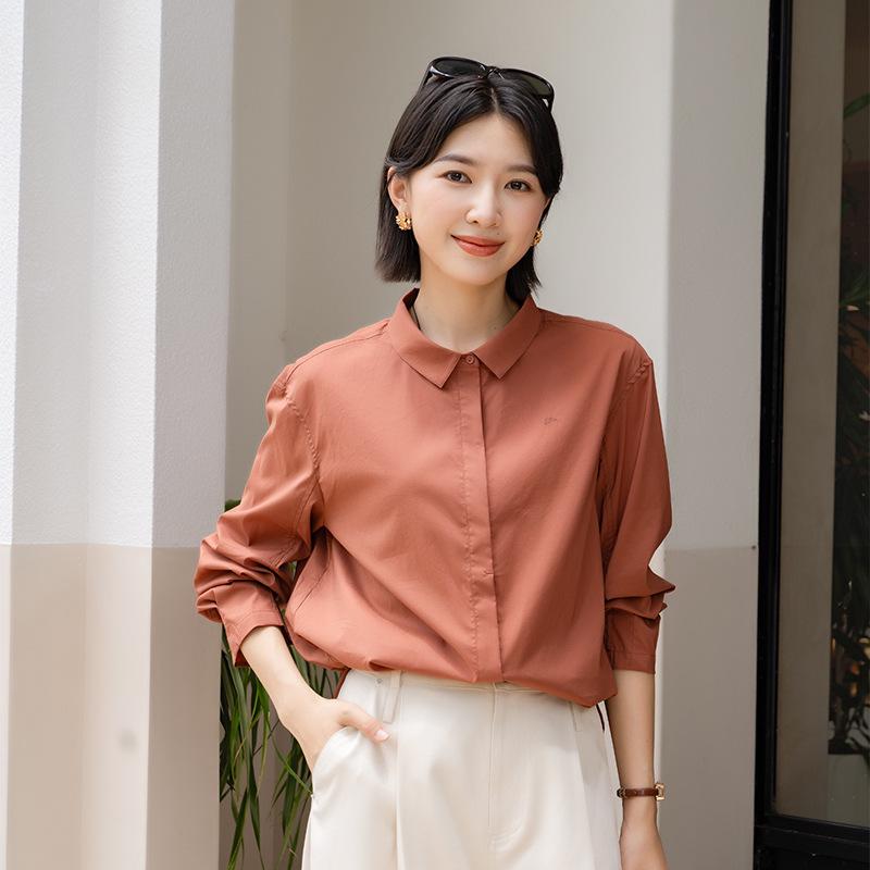 Elevate your work attire with this sophisticated women's long-sleeve professional shirt from the Autumn 2025 Collection. Crafted from high-quality cotton, this top offers both comfort and durability. Its elegant turn-down collar and solid pattern create a timeless look, while the quilted patchwork adds a subtle touch of style. Designed for versatility, this high-end commuter top seamlessly transitions from office meetings to after-work engagements, making it an essential addition to your wardrobe.