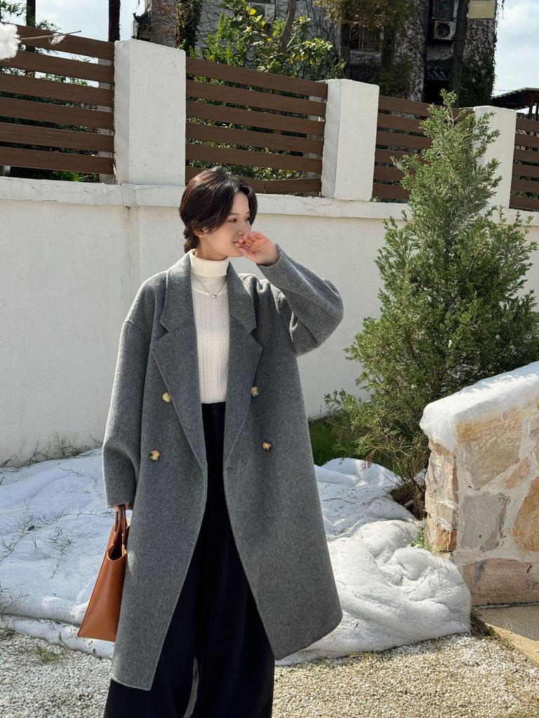 Luxurious Hand-Stitched Korean Cocoon Double-Faced 100% Wool Coat