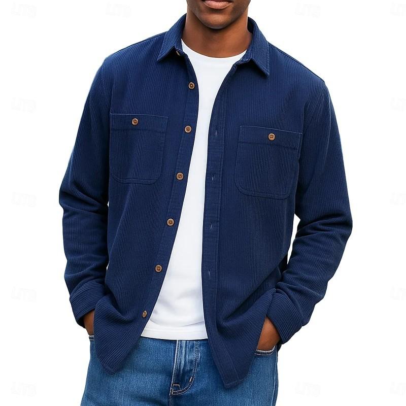 Autumn Winter Men's Solid Color Corduroy Double Pocket Button Long Sleeve Casual Shirt