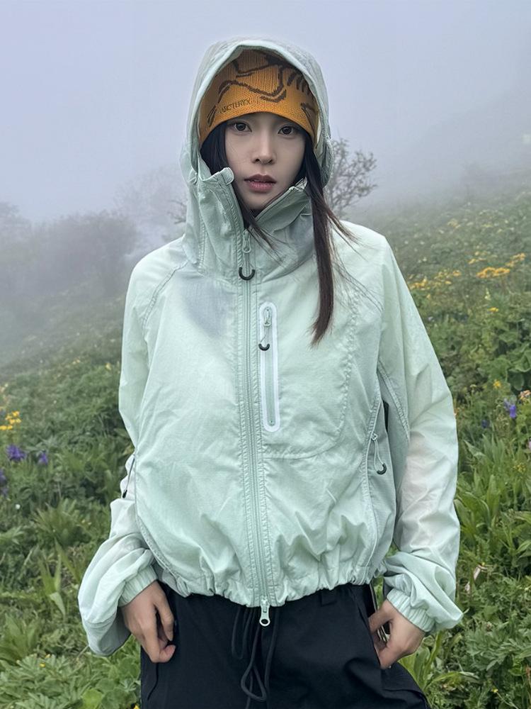 Women's Mint Green Lightweight UV Protection Jacket - Summer Outdoor Breathable, Color Block Design