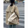 2025 Spring Khaki Women's Long Loose Trench Coat - Petite Mid-Length for Commute