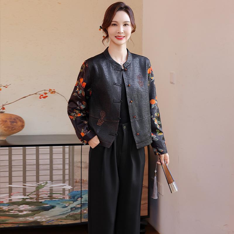 This elegant faux leather jacket is designed specifically for middle-aged and elderly women, offering both style and comfort. Crafted from high-quality polyester, it is both durable and easy to maintain. The jacket features a long sleeve design, perfect for the autumn season, and includes a chic print that adds a touch of sophistication. Its thoughtful design ensures a flattering fit for any body type, making it a versatile addition to any wardrobe.