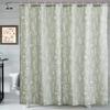 Green Botanical Linen Shower Curtain Extra Long 84 Inches Long, Spring Summer Boho Plants Leaves Textured Fabric Bathroom