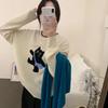 Korean Style Color Block Kitten Embroidered Pullover Sweater for Women, 2025 Design