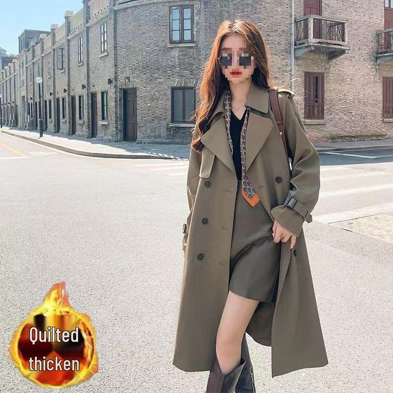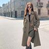 French Women's Drapey Mid-Length Trench Coat - Spring/Autumn, Waist-Cinching, Fashionable.