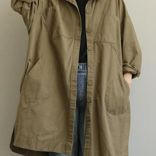 Women's Workwear Style Long Sleeve Mid-Length Fleece Windbreaker - Loose Plus Size, Spring & Autumn Coat