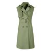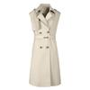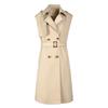 Elevate your casual style with this women's sleeveless double-breasted trench coat. Designed for comfort and versatility, this trench coat features a tailored neckline and a solid pattern that adds a touch of sophistication to any outfit. Made entirely from polyester, it offers a medium thickness, making it perfect for layering in transitional weather. Complete with a belted waist, this stylish outerwear piece is ideal for those seeking a modern and chic look without compromising on practicality.