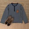 Blue & White Striped Waffle Knit Crew Neck Long Sleeve T-Shirt - Breathable & Comfortable Casual Top