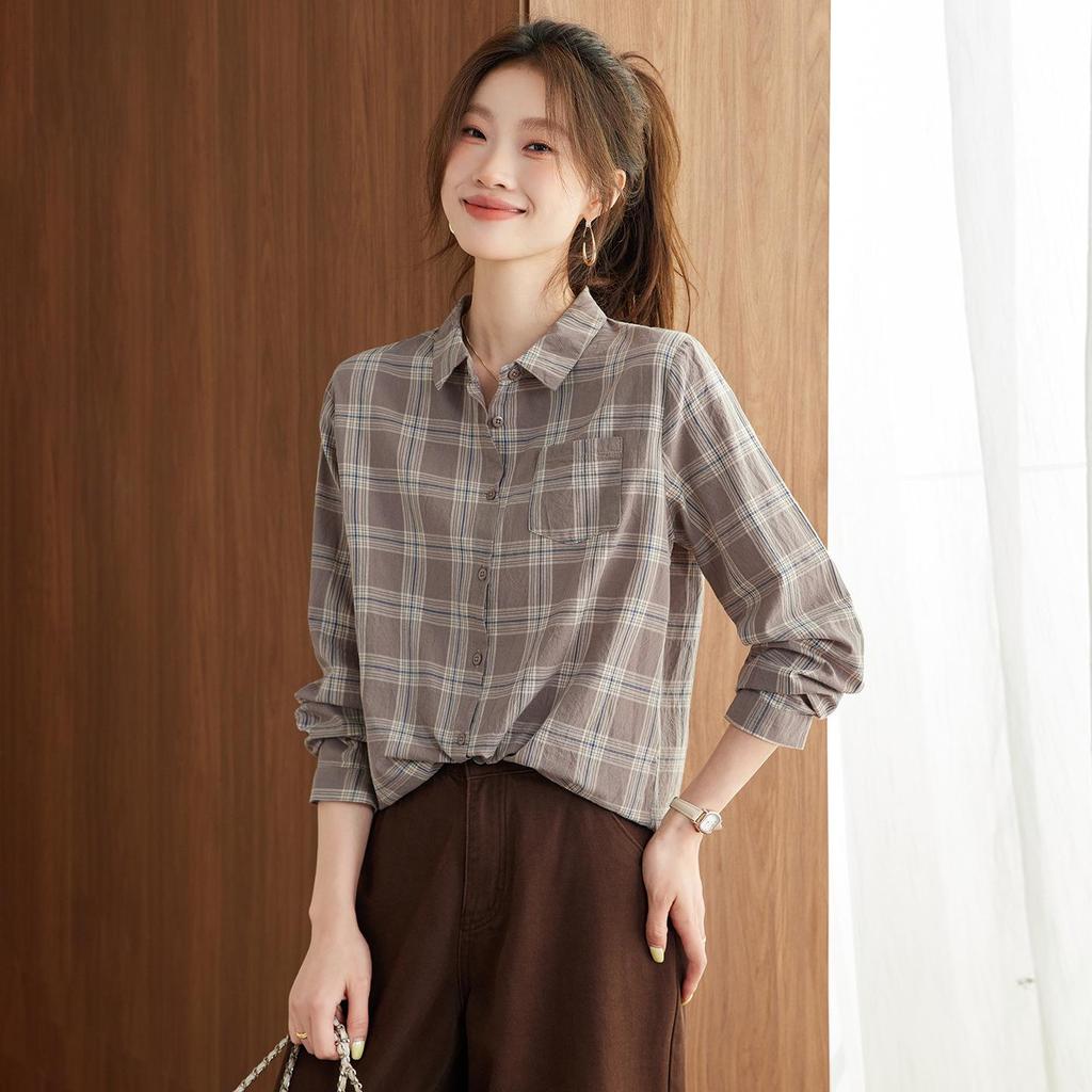 Elevate your seasonal wardrobe with this new addition for Spring and Autumn 2025. This women's shirt is crafted from high-end cotton, ensuring both style and comfort. The long sleeves and round neckline create a classic look, while the loose casual fit offers a relaxed, graceful silhouette. Unique patchwork and quilted decorations add a touch of sophistication and charm, making this shirt a versatile choice for various casual outings. Embrace the timeless appeal of plaid in a modern design that effortlessly blends comfort with chic elegance.