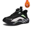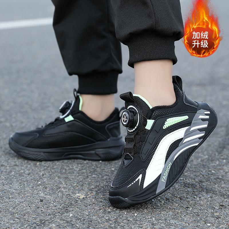 24 Autumn and Winter Classmates, Boys' Sports Shoes, Rotating Buckle, Fleece, Wear-resistant Leather Surface, Lightweight, Medium and Older