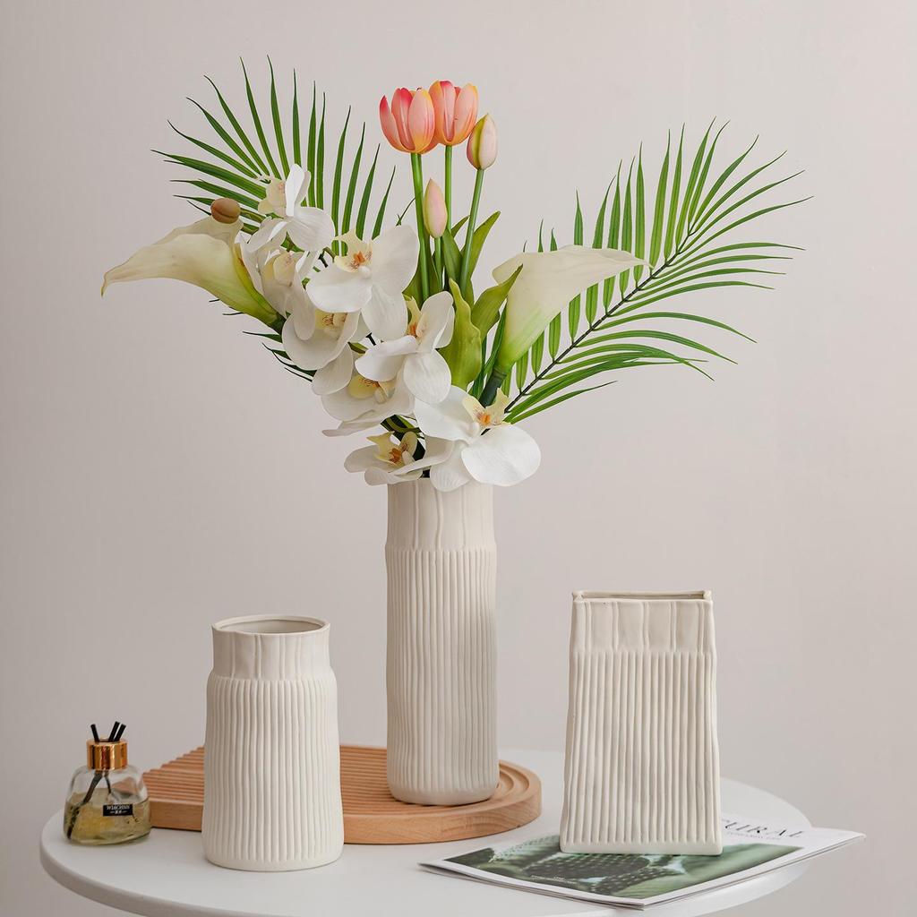 European Frosted Vertical Stripe Ceramic Vase Set for Home Decoration