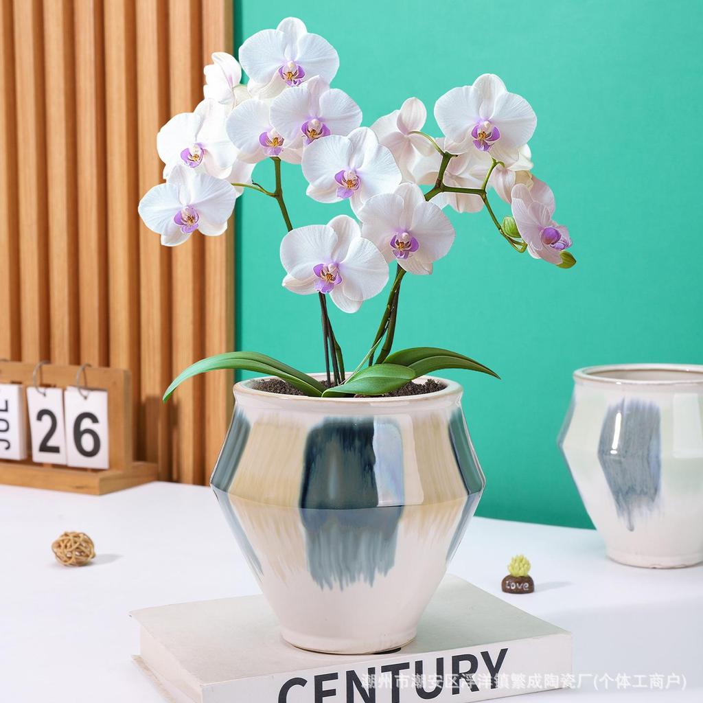 European-Style Hand-Painted Ceramic Flower Pot for Phalaenopsis - Luxurious Decorative Piece for Balcony or Living Room