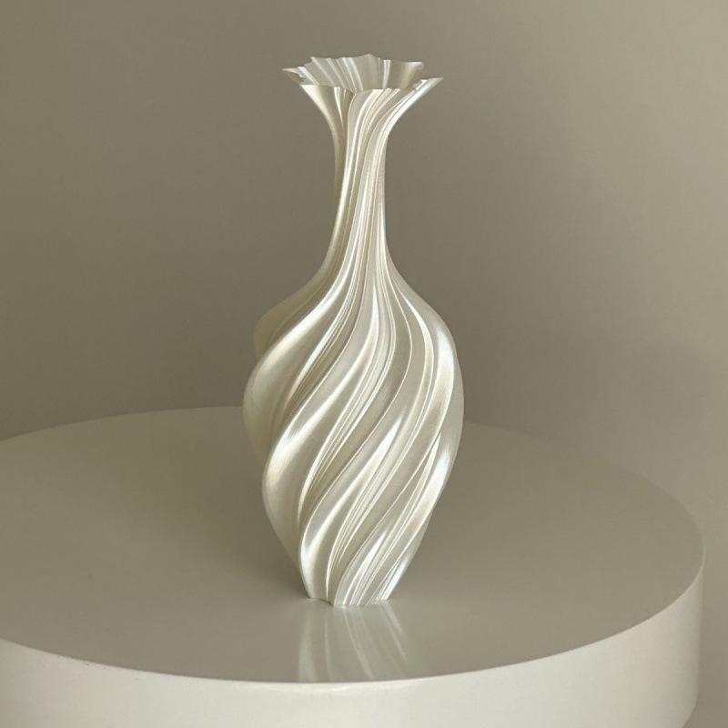 Minimalist Nordic 3D-Printed Twisted Abstract Floral Vase