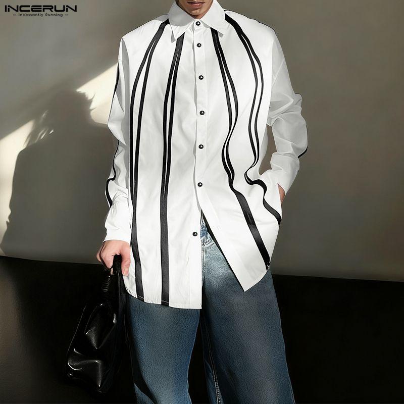 INCERUN Oversized Men Lapel Neck Long Sleee Plaid Print Buttons Down Shirts