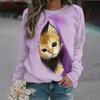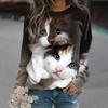 Large-sized Kawaii Cat Women's T-shirt, 3D Printed, Casual Long Sleeve T-shirt, Harajuku Sweater, Women's Wear, T-Shirt