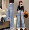 Girls' Denim Wide Leg Pants Children Insulated Jeans for Girls Baby Warm and Thick Denim Pants for Girls Winter Trousers for Kids Teenagers