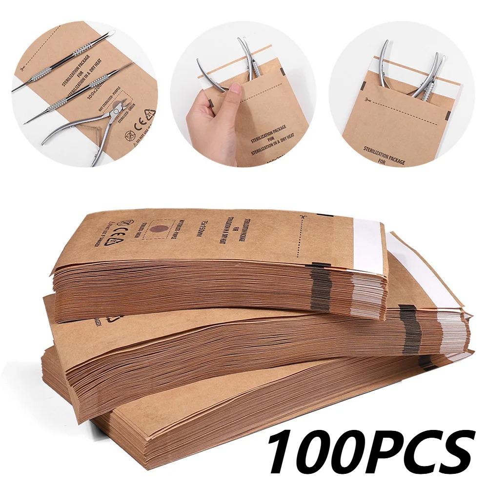 100PCS of Nail Tool Storage Bag Kraft Paper Self Sealing Bag Nail Cleaning and Disinfection Bag Disposable Nail Product Storage