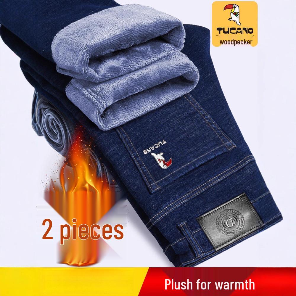 These men's fleece-lined straight leg stretch jeans are designed to keep you warm and comfortable in the colder months of autumn and winter. Made from a durable cotton blend, they offer a loose fit for extra comfort and flexibility. The interior is lined with soft fleece, providing an additional layer of warmth. Ideal for casual wear, these plus-size jeans are perfect for everyday activities while ensuring you stay stylish and cozy.