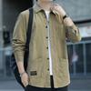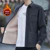 Stay cozy and stylish during the cooler months with this men's fleece-lined corduroy shirt jacket. Designed for autumn and winter, this thick, loose-fit jacket features long sleeves and a solid pattern, offering a timeless look for any occasion. The soft cotton fleece lining ensures warmth and comfort, while the square neckline adds a touch of modern style. With practical pockets for added convenience, this versatile piece is a perfect addition to your wardrobe when the temperatures drop.