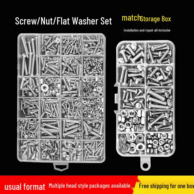 304 Stainless Steel Fastener Set: Nuts, Washers, Machine & Self-Tapping Screws, Bolts, Nails, Round Head M3/M4.
