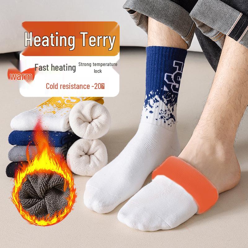 Zhuji Men's Mid-Calf Fleece-Lined Cotton Sports Socks - Odor-Resistant, Extra Thick Terry Cloth for Autumn/Winter