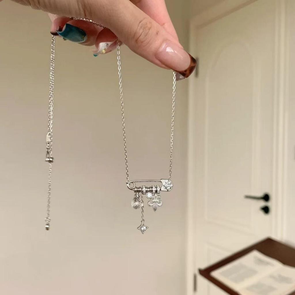 Vintage S925 Sterling Silver Starburst Iris Brooch Necklace - Women's Luxury Choker Clavicle Chain