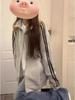 Embrace the chic and cozy vibes of early autumn with this Korean-style hooded sweatshirt jacket. Designed for comfort, its loose fit ensures a relaxed yet stylish silhouette, perfect for layering. Crafted from high-quality cotton, the jacket features a solid pattern and a distinctive three-stripes design that adds a touch of sporty elegance. With a long sleeve length and a hooded neckline, it's an ideal choice for breezy days, combining practicality and fashionable flair seamlessly.