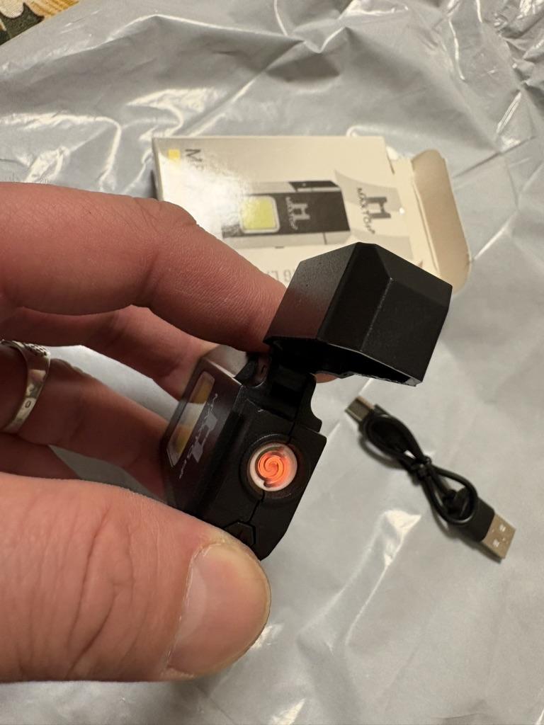 When opening the lid of the lighter itself, there is some plastic defect - it requires effort. The flashlight is okay. And if it had magnets - it would be priceless!