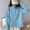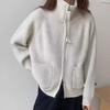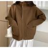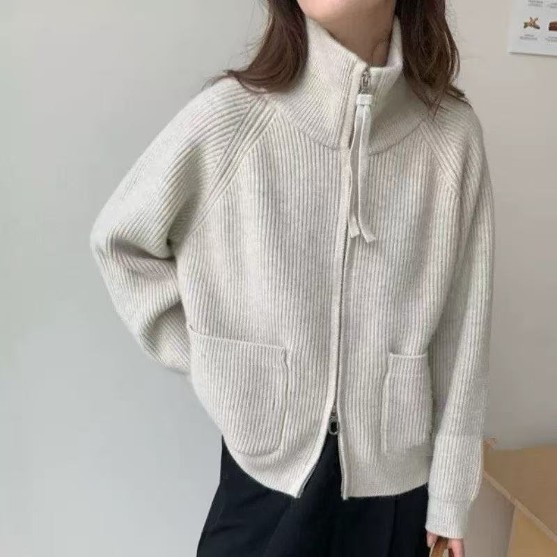 New Autumn and Winter Stand-up Collar, Double Zipper, Long-sleeved, Loose, Large-sized, Laid-back Style Knitted Cardigan Sweater for Women