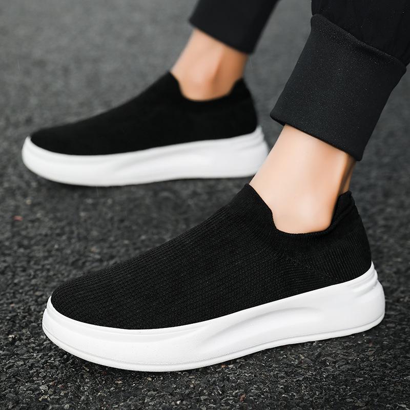 Spring and Summer New One-pedal Breathable Mesh Shoes Couple Thick-soled Fly-woven Foot Socks Casual Shoes Men's Shoes