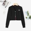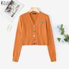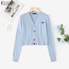 ZANZEA Spring Women V Neck Long Sleeve Buttons Cropped Casual Sweaters Cardigans
