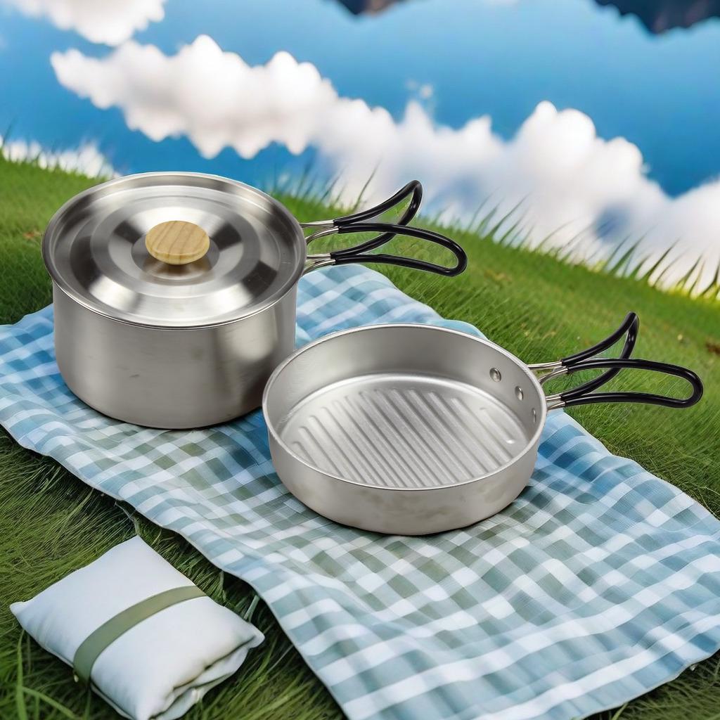 Portable Non-Stick Camping Cookware Set: Foldable Frying Pan & Soup Pot