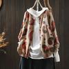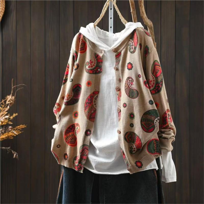 Johnature Women Vintage Knitted Sweaters O-Neck Long Sleeve Autumn Button Print Floral Female Loose Sweaters