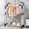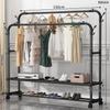 Minimalist Indoor Floor-Standing Coat Rack with Double Pole and Shelf for Bedroom or Balcony