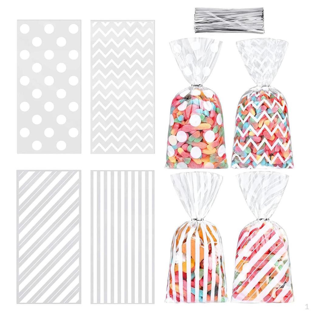 - 【High transparency Material】: The Cellophane Bags are made of PP material, safe, odorfree, with a clear and smooth texture, showing the beautiful appearance of candies and gifts. Four cute patterns are mixed to meet various festival or party packaging needs.