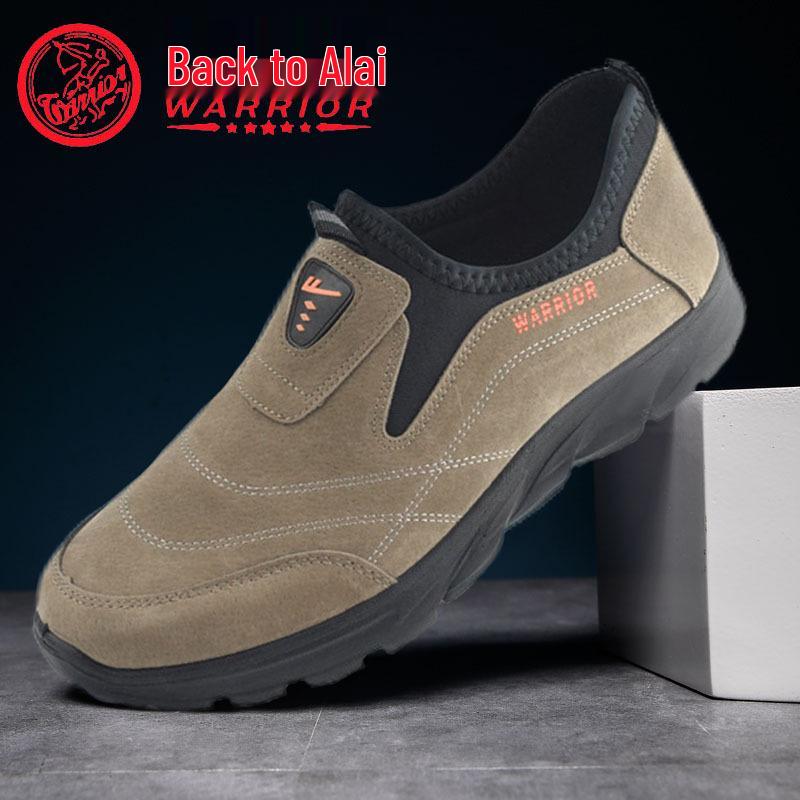 Shanghai Warrior Men's Slip-On Leather Casual Shoes, Non-Slip Soft Sole, Perfect for Travel and Outdoor Activities