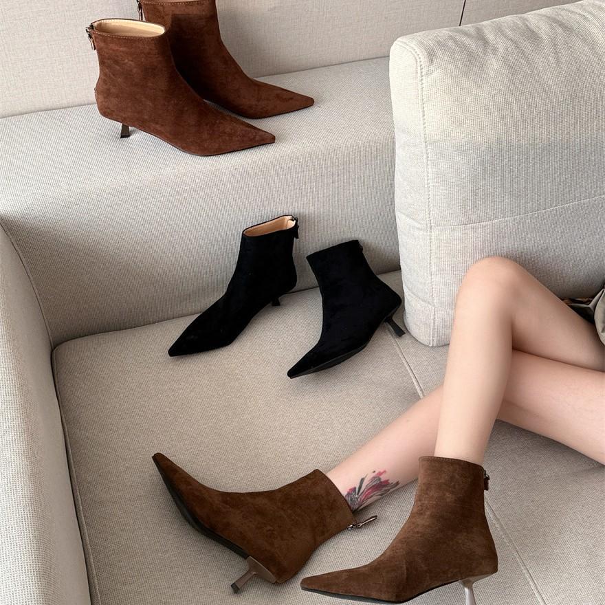 Thin Heel Suede Pointed Short Boots Women's 2025 Autumn and Winter New Korean Version Thin Boots Socks Boots Women's Boots Zipper Elastic Boots