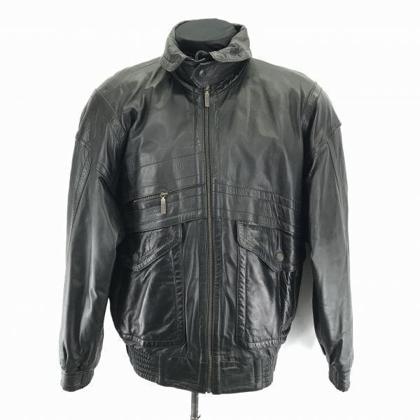 Made in Spain ★ accewi ★ Genuine Leather Single-Breasted Rider's Jacket [Size 46/M/Black] Chin Strap, Fully Lined, Inner Pocket, Oversized Fit ◆ BC104W