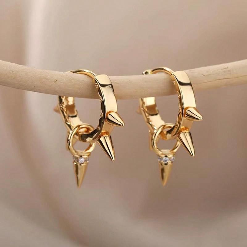 1Pair Punk Spike Rivet Hoop Earrings for Women Stainless Steel Huggie Earrings Ear Cuff Piercing Earring Gothic Jewelry Accessories