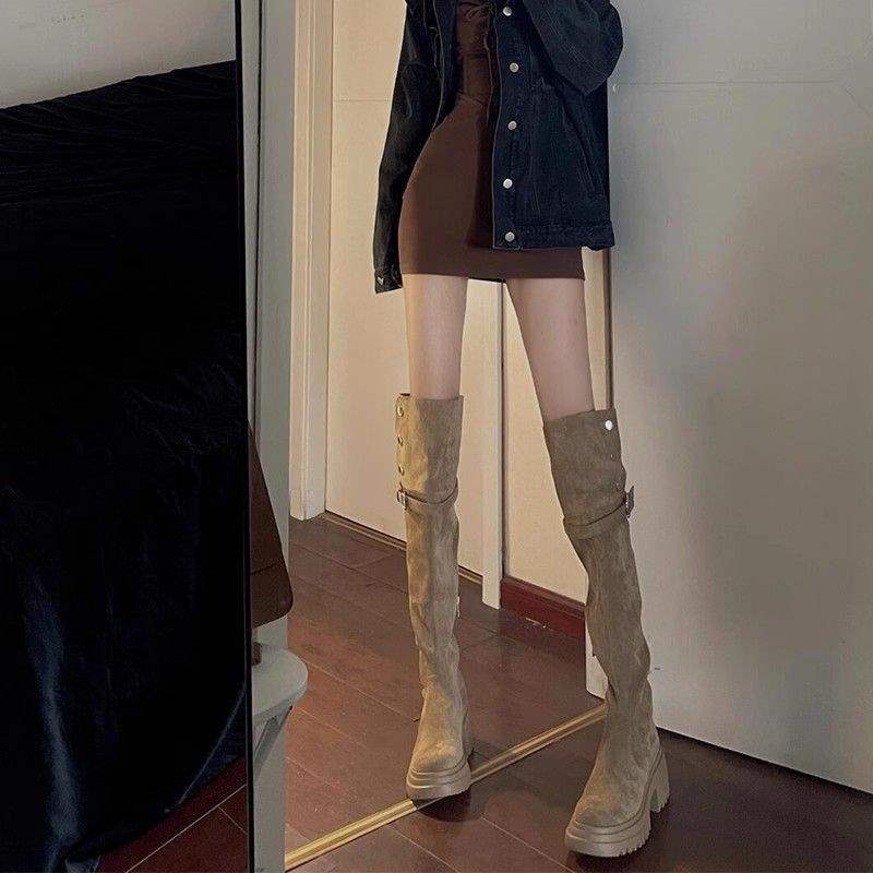 Maillard Two Wear Folded Suede Boots Women's 2025 Autumn and Winter New Small Thick Heel Thick Sole Knee Knight Boots