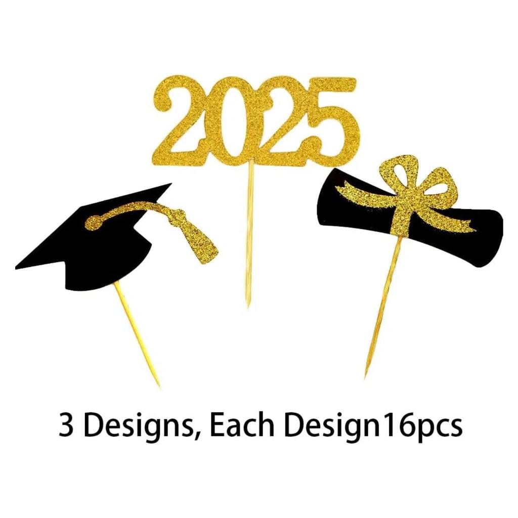 2025 Graduation Cupcake Toppers, Food/Appetizer Picks For Graduation Party Mini Cake Decorations, Diploma, 2025, Grad Cap