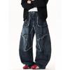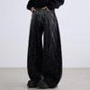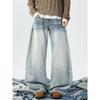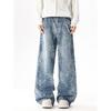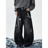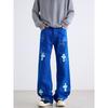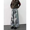 Unisex Retro Star Design Frayed Edge Wide Leg Jeans