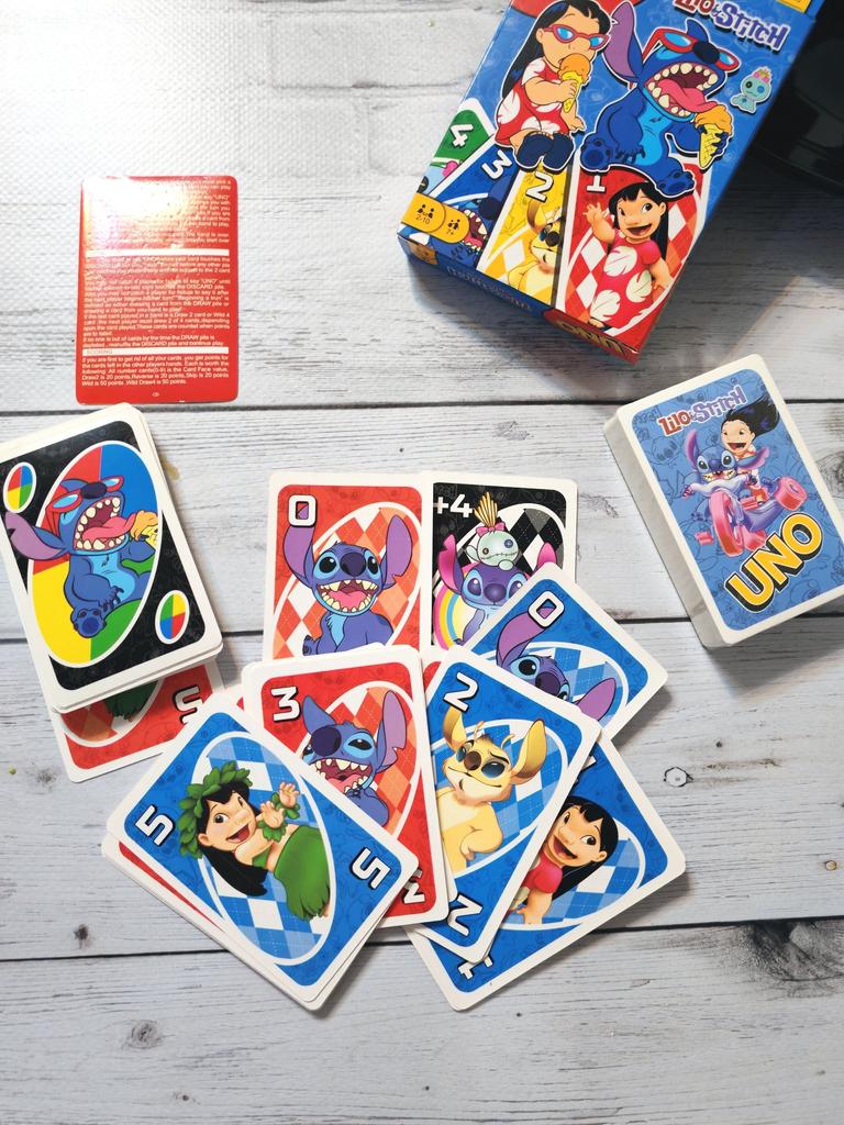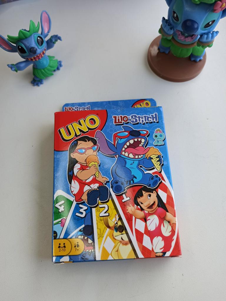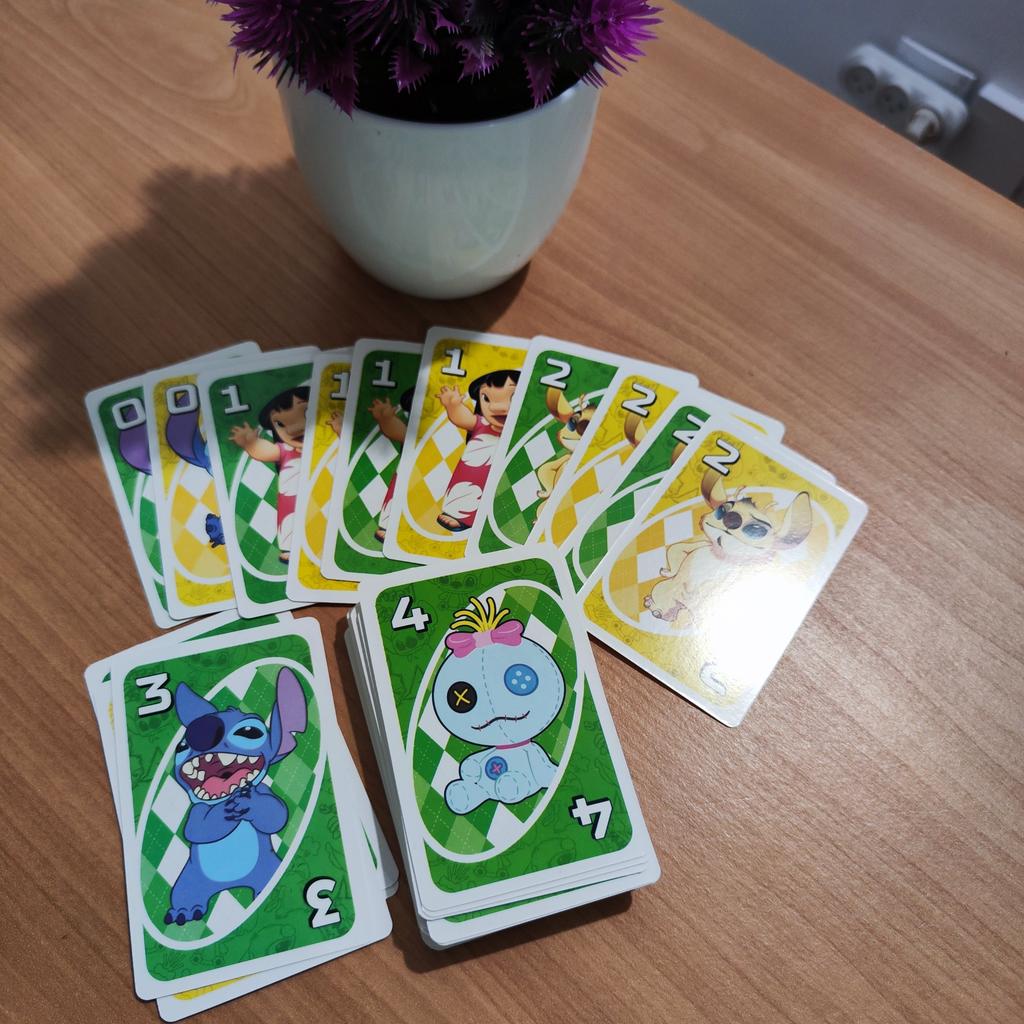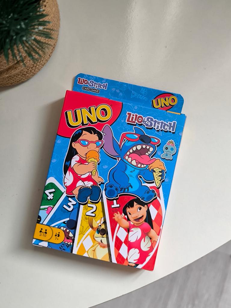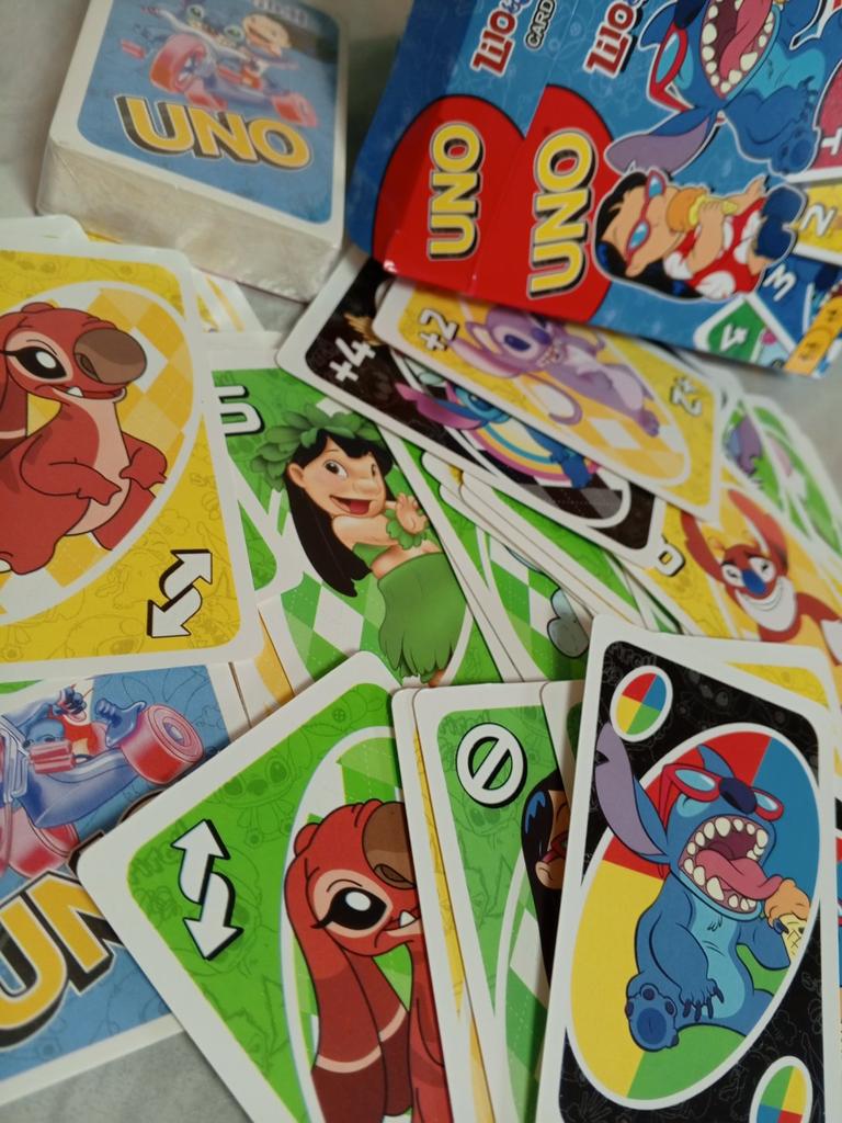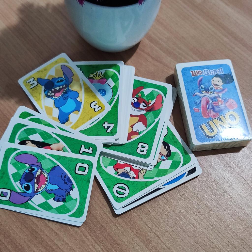 UNO Cards Lilo & Stitch version Cool game. The point is to get rid of all your cards by discarding those that match in color or number. And the main fun: don't forget to say "Uno!" when you have one card left. The quality is good, the cards are made of cardboard Interesting and very fun for both children and adults. The price is great. I recommend ๐ค