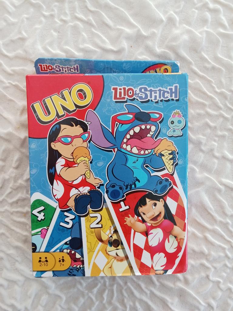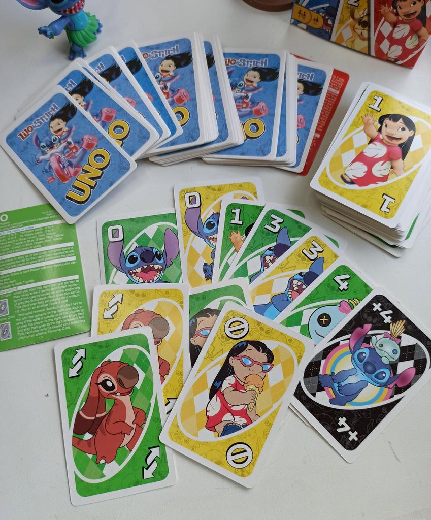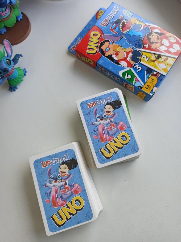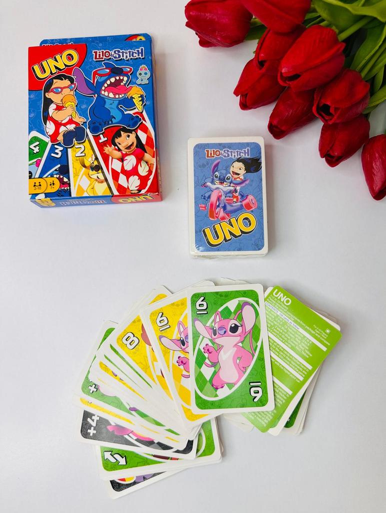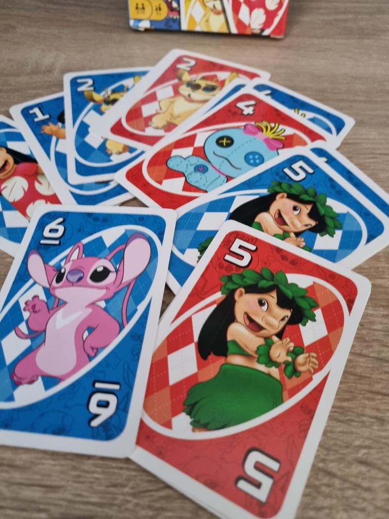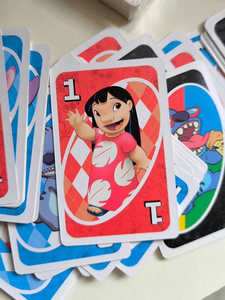 UNO Cards Lilo & Stitch version Cool game. The point is to get rid of all your cards by discarding those that match in color or number. And the main fun: don't forget to say "Uno!" when you have one card left. The quality is good, the cards are made of cardboard Interesting and very fun for both children and adults. The price is great. I recommend ๐ค
