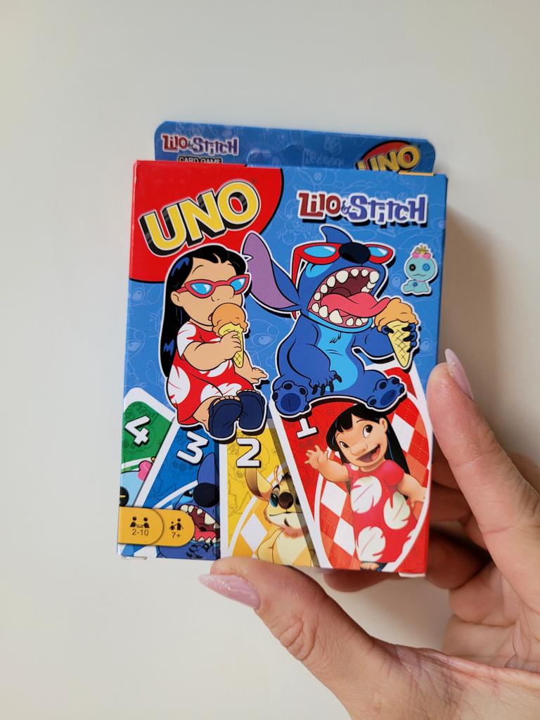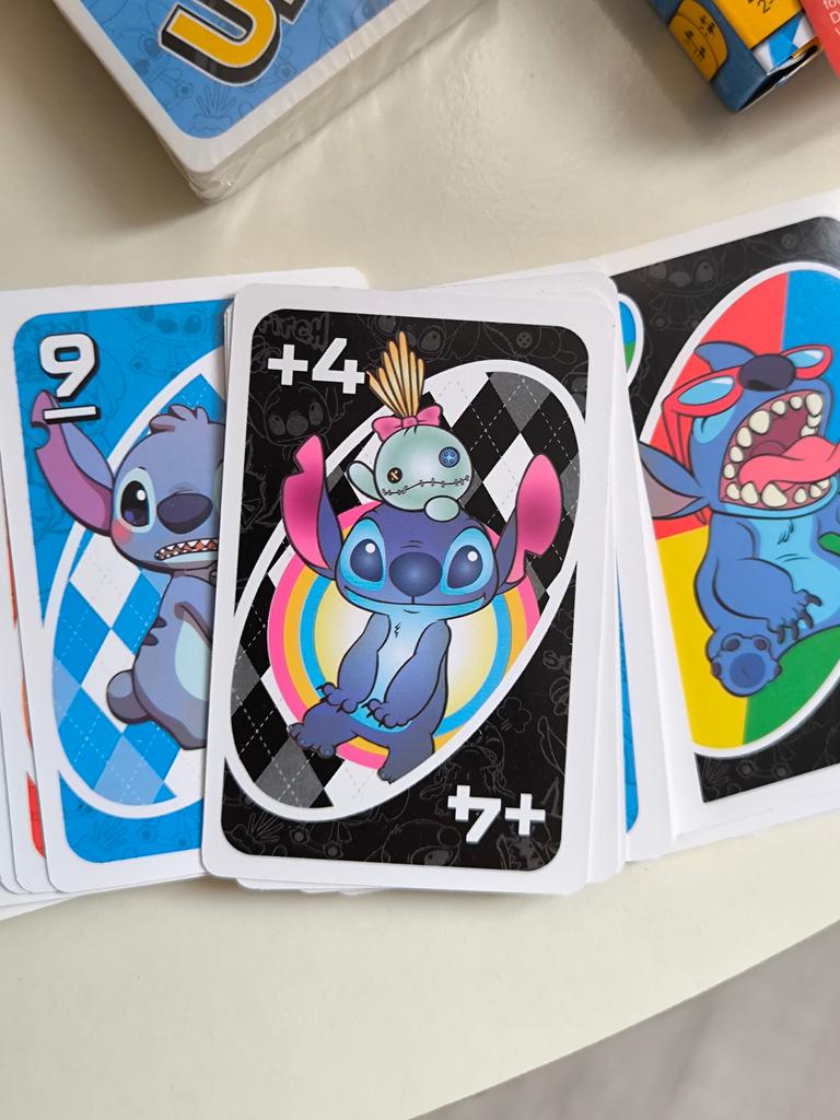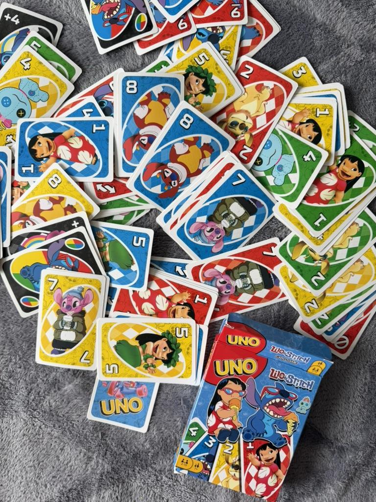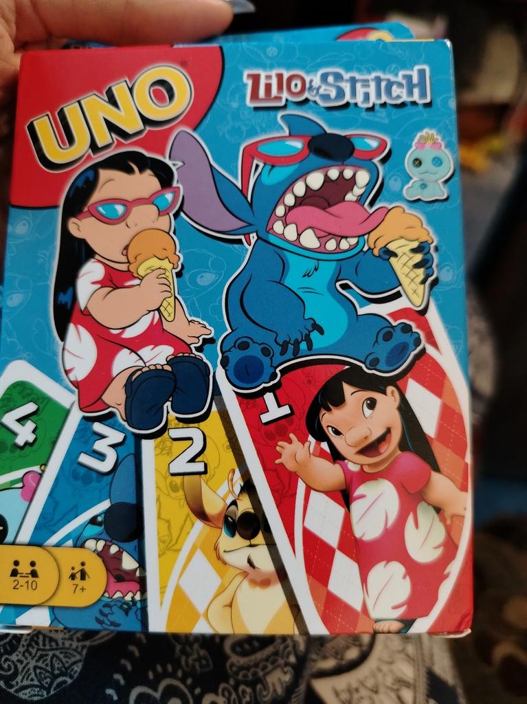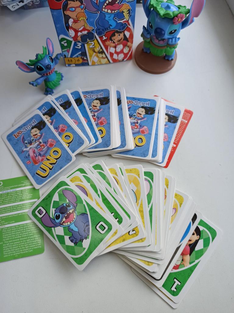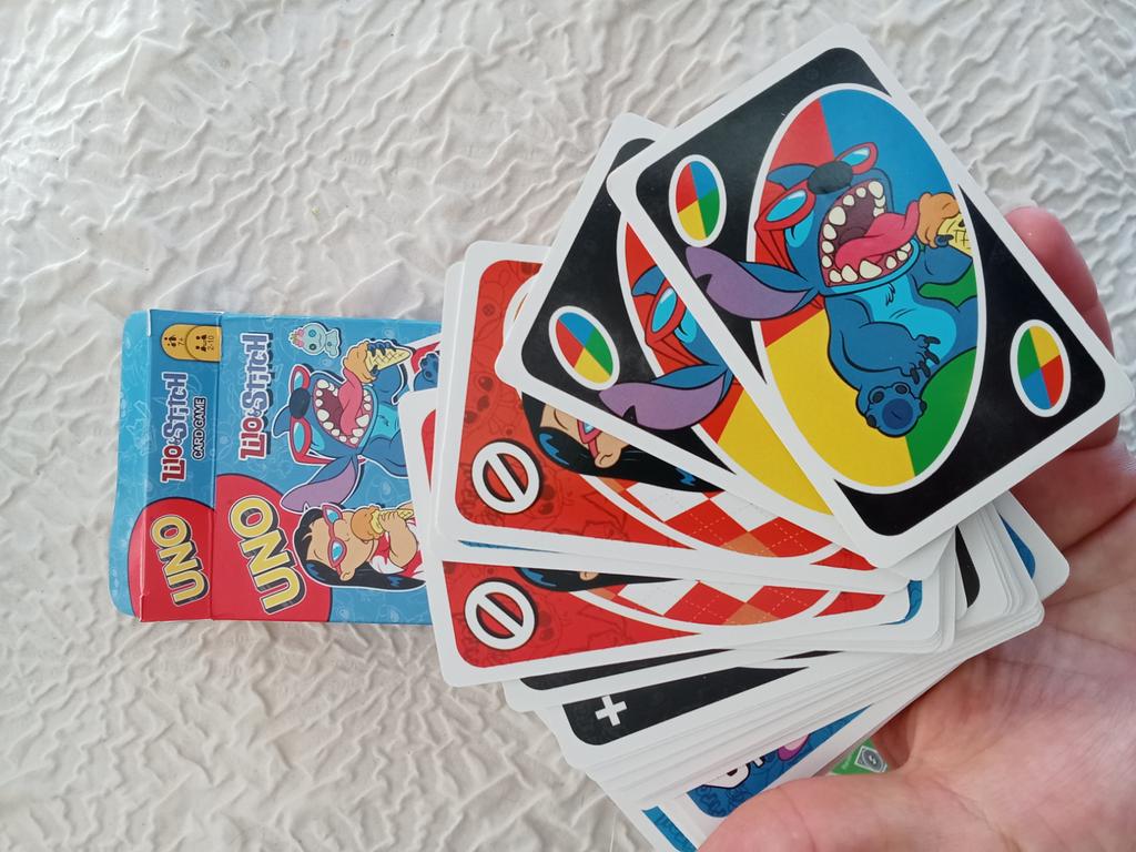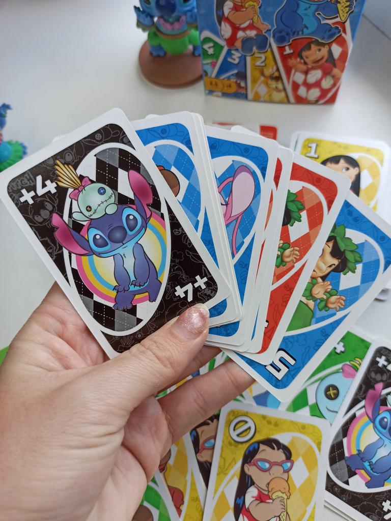 UNO Cards Lilo & Stitch version Cool game. The point is to get rid of all your cards by discarding those that match in color or number. And the main fun: don't forget to say "Uno!" when you have one card left. The quality is good, the cards are made of cardboard Interesting and very fun for both children and adults. The price is great. I recommend ๐ค