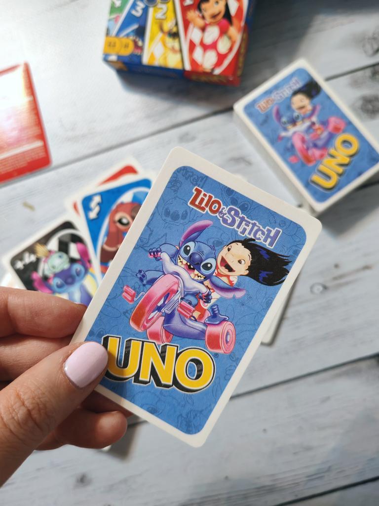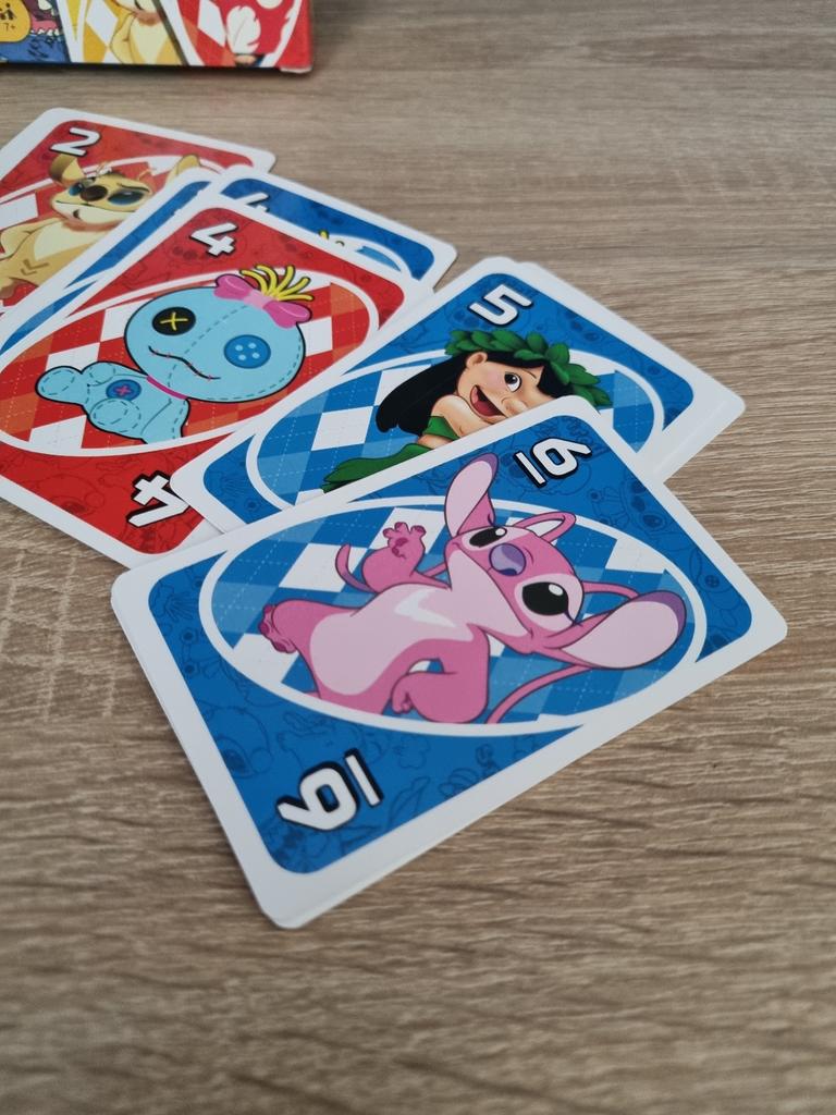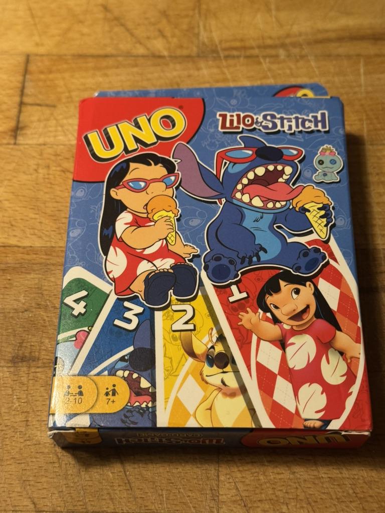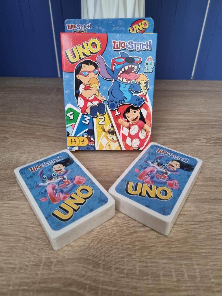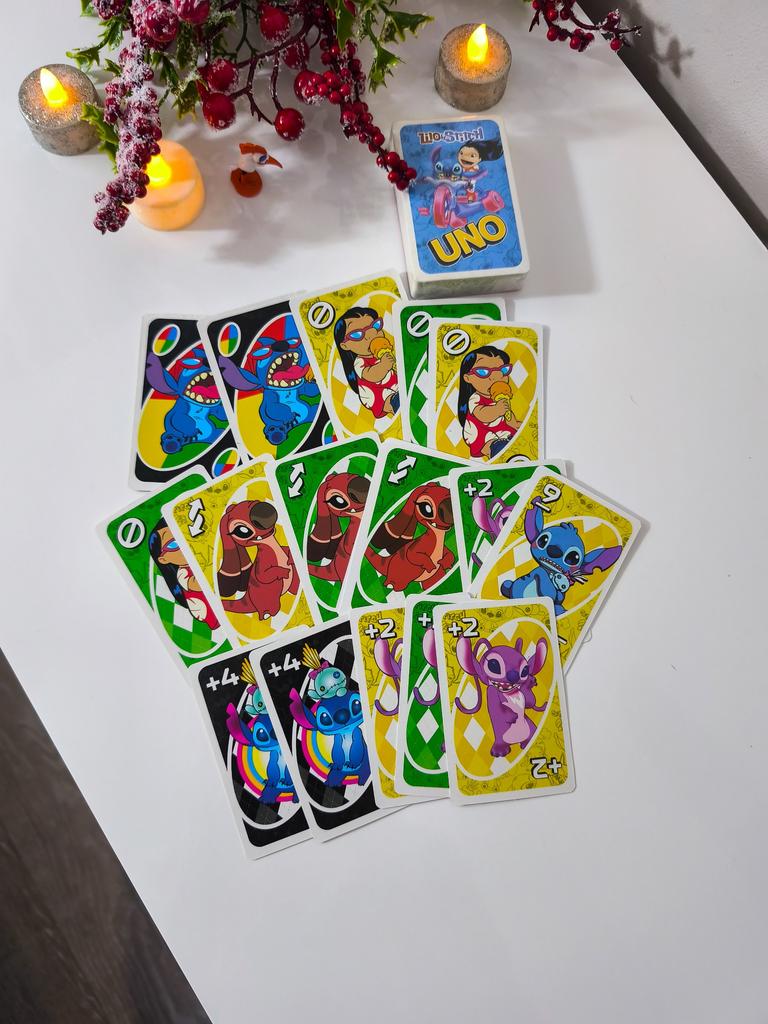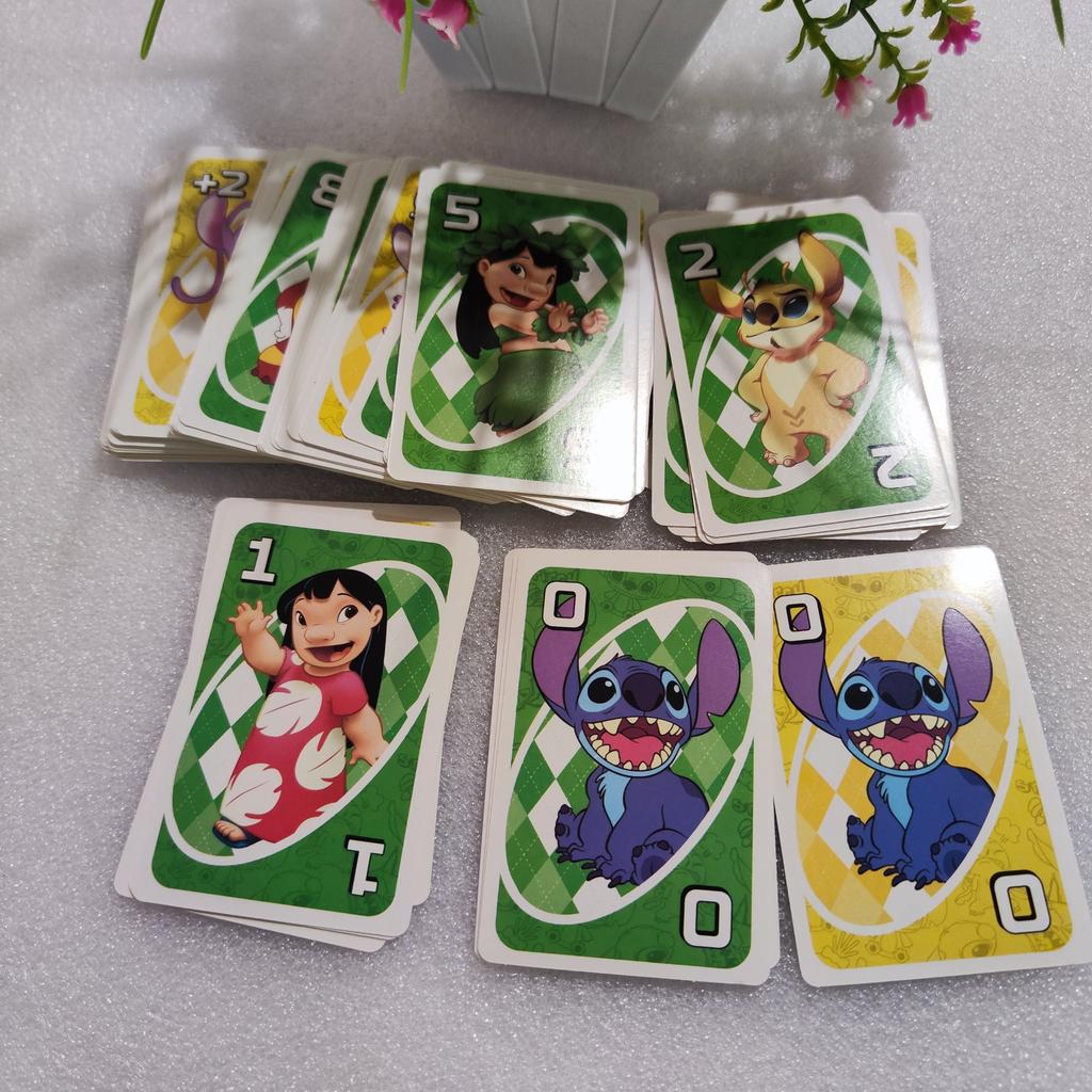 UNO Cards Lilo & Stitch version Cool game. The point is to get rid of all your cards by discarding those that match in color or number. And the main fun: don't forget to say "Uno!" when you have one card left. The quality is good, the cards are made of cardboard Interesting and very fun for both children and adults. The price is great. I recommend ๐ค
